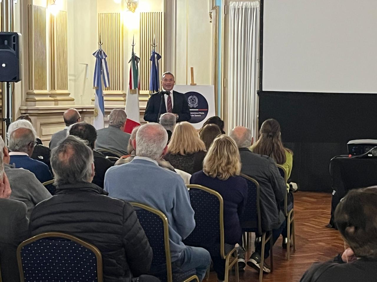 Durante la velada, en las instalaciones de la Sociedad Italiana Unión y Estrella de Lomas de Zamora, se proyectó un video de presentación realizado por el Ministerio de Relaciones Exteriores y Culto. Seguidamente se compartió un video con las imágenes más espectaculares de las evoluciones de Giulia sobre el agua, personalizado con un saludo de la atleta al público argentino que fue apreciado con entusiasmo. Para el final se proyectó el documental de Roberto Palozzi «Historia de una gota de agua» que recorre el nacimiento del río Velino y todo su trayecto hasta las cascadas de Marmore.