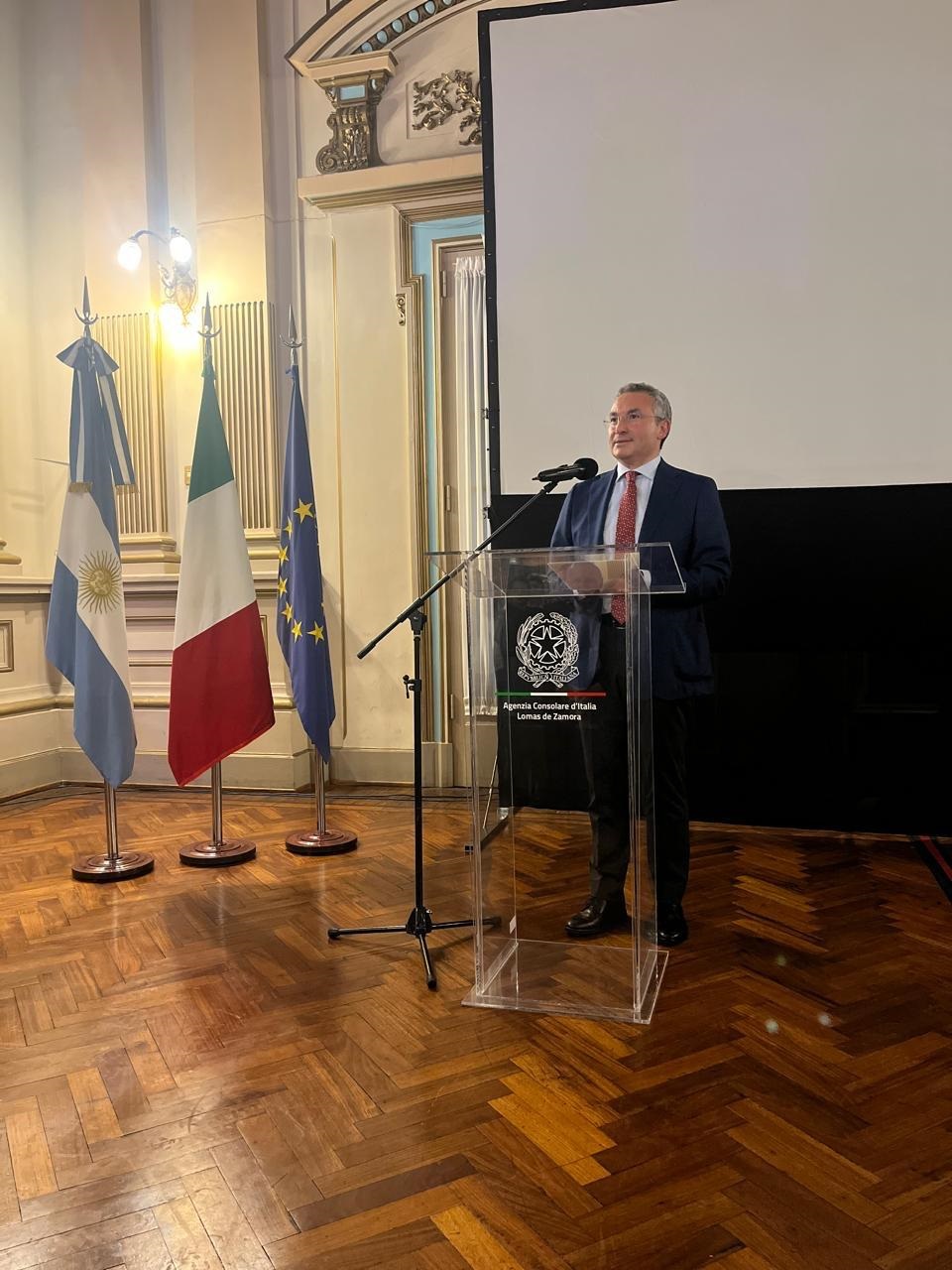 Brindis de fin de año de la Agencia Consular con la comunidad italiana. El viernes pasado, en el Salón Dorando de la Sociedad Unione e Stella de Lomas de Zamora, el Agente Consular Massimo Palozzi repasó las numerosas actividades desarrolladas durante 2025. Siguió el saludo del Cónsul en Buenos Aires Lorenzo Conti. Al finalizar, se proyectó el filme “Il giorno della civetta” (El día de la lechuza), adptación de una novela de Leonardo Sciascia, como homenaje a la gran actriz Claudia Cardinale, fallecida en semptiembre.